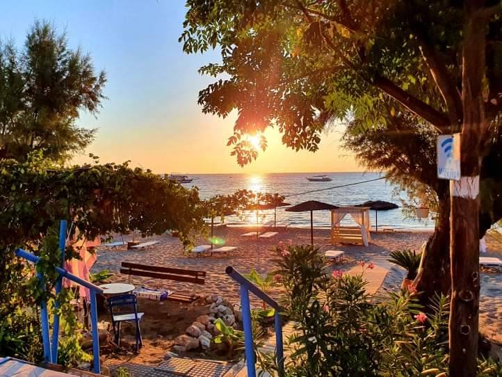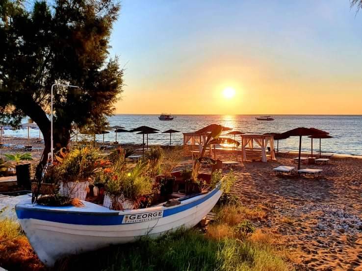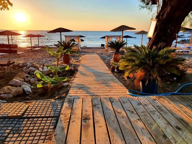 Stegna Beach has clear waters and it is the perfect place to relax, as it is peaceful, quiet and unspoilt with amazing views. Early in the morning you can enjoy an amazing sunrise, which is truly breathtaking